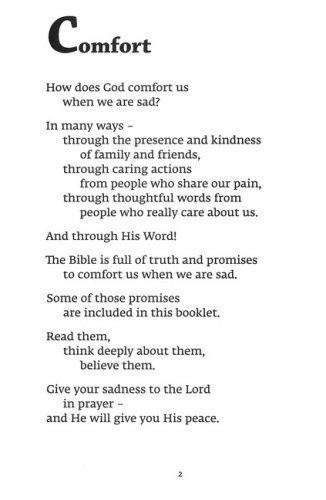God Understands offers Biblical comfort for people dealing with grief and the loss of a loved one. This inspirational booklet includes Biblical messages about comfort, loss, pressure, anger, guilt, joy, and other topics. Part of Bible League International's booklet set called the Friendship Series. Large Print, 12 point type, 48 pages, paperback booklet.