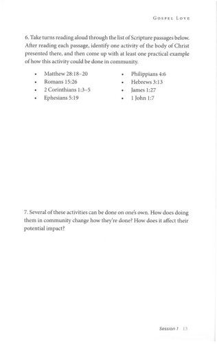 Gospel Love, a ten-session small group resource, helps participants examine their relationships and learn how the gospel of Jesus Christ frees them to love others. Topics covered include barriers to loving others, how love is an expression of faith, the role of the Spirit in relationships, honesty vs. judging, and how to live with forgiveness and compassion. With user-friendly small group activities and questions rooted in Scripture, this small group study includes a leader's guide and is suitable for small groups and individual mentoring. Other books in series are Gospel Identity and Gospel Growth. These can be used as stand-alone products.