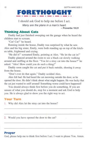 The popular Gotta Have God series is back with even more fun-packed devotions and activities for you to share with your son. Based on the same format as the first edition, Gotta Have God 2 has devotionals to help you teach your preschooler about the Bible and God's plan for his life. Each devotional includes an age-appropriate memory verse, a story, a prayer and a creative activity to show your little boy that God is his friend and protector. Recommended for ages 2 to 5.
