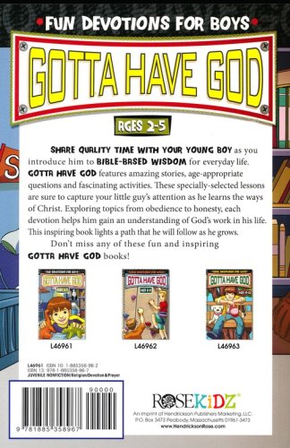 Lead your little boy to a lifelong commitment to Christ with Gotta Have God. A devotional just for preschool boys, Gotta Have God includes over 100 fun readings and activities you can share with your son. Touching on topics from love to fear, every devotion will help your preschooler gain a better understanding of Christ's work in his life. Recommended for ages 2 to 5.