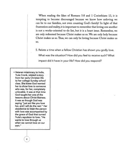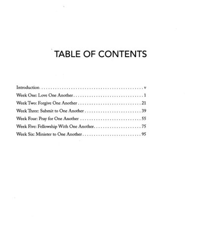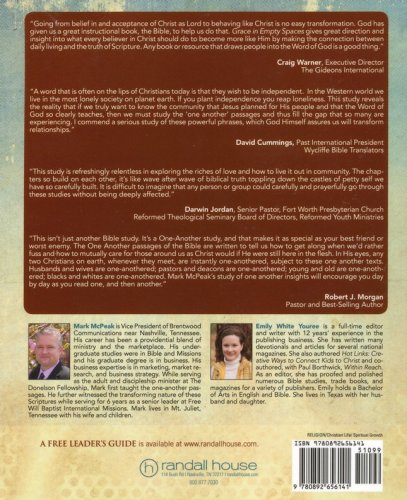 We all strive for unity in various relationships, but we often ignore direct instruction given in Scripture on how to treat others. Grace in Empty Spaces is an excellent small group study that will teach those principles and give practical instruction on how instructions found in Scripture should impact every life. This six-week study covers the following familiar "one-another" passages of Scripture:Love One AnotherForgive One AnotherSubmit to One AnotherPray for One AnotherFellowship with One AnotherMinister to One Another