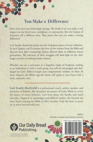 Lori Stanley Roeleveld offers you the chance to realize the power of your influence. In examining the lives of pairs of women from the Bible, you will discover how their contrasting choices allowed them to influence future generations. And whether their decisions were wise or unwise, God was able to use their stories to make Himself known. The relevance of their struggles will shed light on the challenges modern women face in making similar choices.
