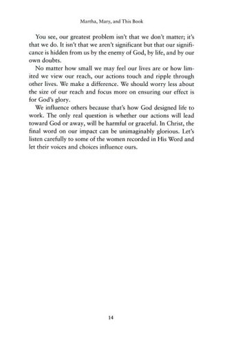 But the stories of biblical women answer resoundingly, Yes, you do make a difference!