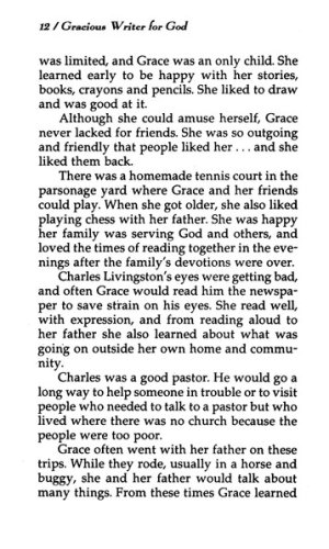 This book is about Grace Livingston Hill one of the most prolific writers of Christian novels whose works spanned the first half of the 20th century. Her creative and dramatic writing has influenced the reading habits of thousands and thousands of readers.