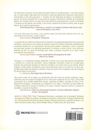 Con Big Truths for Young Hearts, Bruce Ware, (lo has adivinado ) Un profesor de teologa, alienta y permite a los padres de nios de 6 a 14 aos de edad ensear a travs de toda la teologa sistemtica a un nivel que sus hijos puedan entender. Los padres pueden ensear a sus hijos las grandes verdades de la fe y moldear sus visiones del mundo desde el principio, basndose en estas verdades.