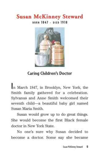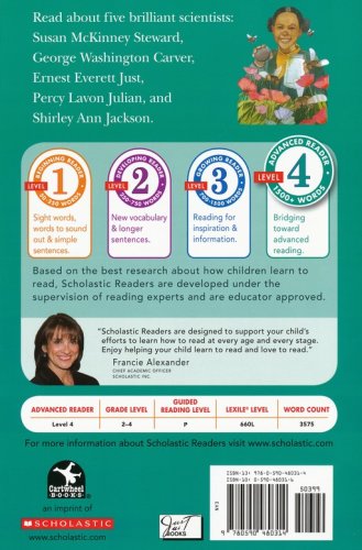This easy-to-read biography describes the early lives and notable achievements of Susan McKinney Steward, the first Black female doctor in New York State; George Washington Carver, the world-famous agricultural scientist most noted for his work with peanuts; Ernest Everett Just, a remarkable marine biologist known as "the expert" on the early life of sea animals; Percy Lavon Julian, an outstanding chemist who discovered drugs to treat glaucoma and arthritis; and Shirley Ann Jackson, a nuclear physicist who helped AT&T design and build circuits for long distance communication. Archival photographs and Ron Garnett's realistic illustrations of the five personalities help to illuminate the biographies.
