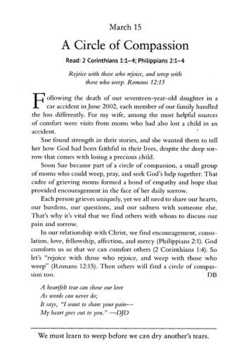"Great Is Thy Faithfulness" is the theme that runs throughout this collection of Our Daily Bread meditations. Each was selected to remind you that God is with you in all circumstances-and in Him, you will find "strength for today and bright hope for tomorrow." Just as the Scripture-based hymn highlights God's steadfastness, these meditations encourage you to trust and thank God through all seasons of life.