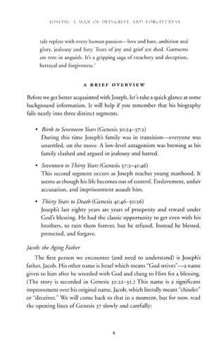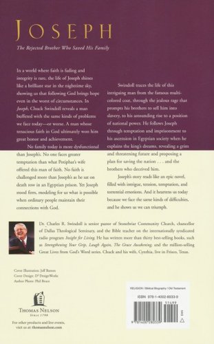 No family today is more dysfunctional than Joseph's was. No one faces greater temptation than that which Potiphar's wife offered Joseph. No faith is challenged more severely than was Joseph's on death row. Yet Joseph stood firm, exemplifying what is possible when ordinary people maintain their connections with God. Like an epic novel filled with intrigue, tension, and torrential emotions, Joseph's triumphiant story touches us all. Great Lives: Joseph presents a fresh look at one of the most intriguing characters in the Old Testament and focuses on the virtue of forgiveness in the face of deceit and betrayal.