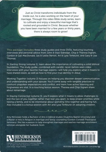 Three studies to help you grow a strong marriage! This 3-in-1 box set includes the three study guides from the Growing a Strong Marriage series, packaged with their three corresponding DVDs: Starting Strong, Working Together, and Staying Connected.