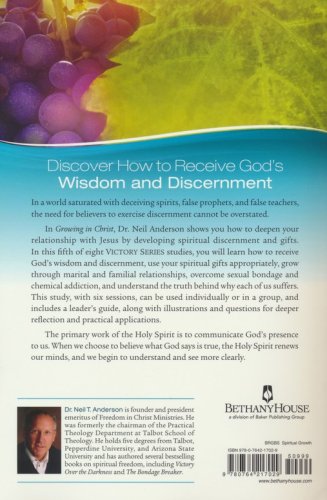 In Growing in Christ, Dr. Neil Anderson shows you how to deepen your relationship with Jesus by developing spiritual discernment and gifts. In this fifth of eight Victory Series studies, you will learn how to receive God's wisdom and discernment, use your spiritual gifts appropriately, grow through marital and familial relationships, overcome sexual bondage and chemical addiction, and understand the truth behind why each of us suffers. This study, with six sessions, can be used individually or in a group, and includes a leader's guide, along with illustrations and questions for deeper reflection and practical applications.