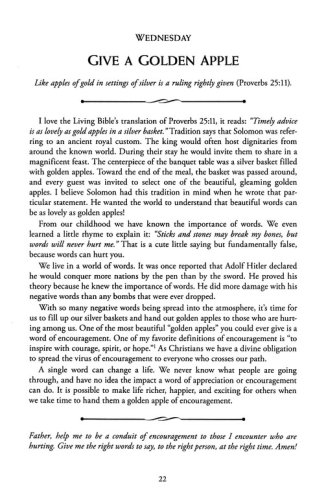 You will experience 260 short, yet powerful devotional moments with God that will bring you strength, restoration, clarity, and wisdom. Covering topics such as miracles, your words, forgiveness, trust, love and hope, discover how God’s Word can positively shape the course of your day, bringing joy, freedom, peace, and a deeper intimacy with Jesus into your life.