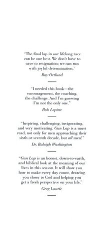 "Gun Lap" is for men who are running their last lap. Or maybe younger men who are looking ahead to their gun lap, but want to live the rest of their lives with purpose and strength.