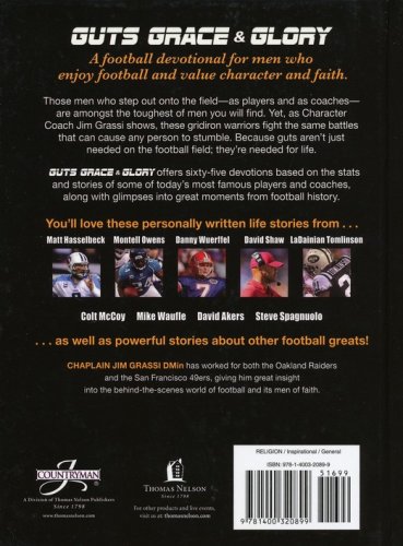 In Guts, Grace, and Glory Dr. Jim Grassi shows how to incorporate faith and endurance on a daily basis—not just to win at football, but to win at life. Anecdotes from the greatest players in the game—Johnny Unitas, Tim Tebow, Paul Bear Bryant, RGIII, Bryan "Bart" Starr, Matt Hasselbeck, and more—and their coaches demonstrate how glory, on and off the field, hinges on a solid relationship with God and the guts with which one plays out life’s challenges. The book touches on several life-affirming topics including setting your heart and mind on the eternal, living your life as a model of Christ, and building a legacy that lasts.