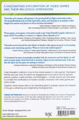 Craig Detweiler's collection of up-to-the-minute essays on video games' theological themes (and yes, they do exist!) is an engaging and provocative book for gamers, parents, pastors, media scholars, and theologians–virtually anyone who has dared to consider the ramifications of modern society's obsession with video games and online media. Together, these essays take on an exploding genre in popular culture and interpret it through a refreshing and enlightening philosophical lens.
