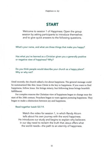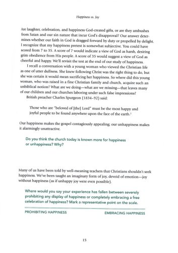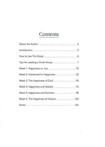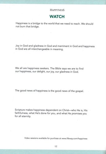 Happiness Bible Study Book includes a small-group experience for six sessions, individual study, applicable Scripture, and a group discussion guide.