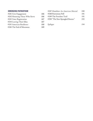 In these pages you'll find a pinch of nostalgia, a dash of travelogue, a burst of patriotism, and even a challenge for all Americans to cherish this country and . . . maybe do better.