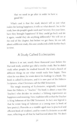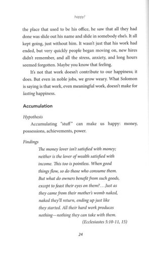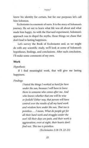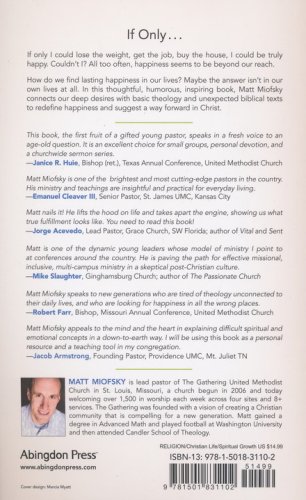 We all dream of being happy. If we could just lose the extra weight, get the job, buy the house, we could truly be happy. But over time, it begins to seem as though lasting happiness is unattainable. Despite our best efforts, true happiness will never be a reality for us. So how do we find lasting happiness and contentment in our lives? Maybe the answer isn’t in our own lives at all. Matt Miofsky connects the existential question, "Am I happy?", with basic theology and unexpected biblical texts. Starting with the book of Ecclesiastes, considering if any "thing" can make us happy, he explores the value of relationships, a forgiving lifestyle, living in the present, feeling gratitude, and learning to release control. Additional components for a four-week study include a comprehensive Leader Guide and a DVD featuring author and pastor Matt Miofsky.