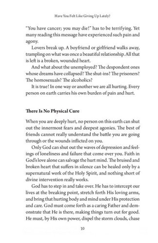 We all experience times of sadness, trial, and pain. But what happens when grief and depression seem so overwhelming that we feel like simply giving up? This encouraging book from bestselling author and longtime pastor David Wilkerson shows you how to trust God to bring you through hard times, wait on God's answers to prayer, lay down your guilt, and much more.