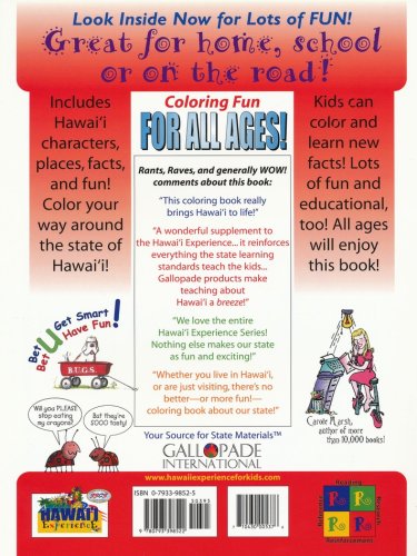 Have fun while learning about your state's history! This coloring book contains coloring pictures with captions of Hawaii's most famous people, history, state facts, flora & fauna, and fun facts! 32 reproducible pages, softcover. Grades PreK-K.