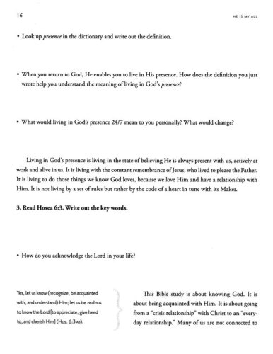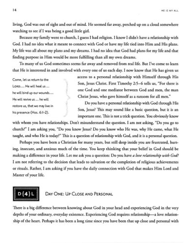 He Is My All is a ten-week journey where you will encounter a God who adores you. This study explores the hope, healing, and life-changing power found in His perfect love. Each day's selection features room for your thoughts, allowing you to journal and meditate on your personal journey. You'll find a God who loves you completely, experience His life-changing power, and embrace a deeper relationship with your heavenly father.