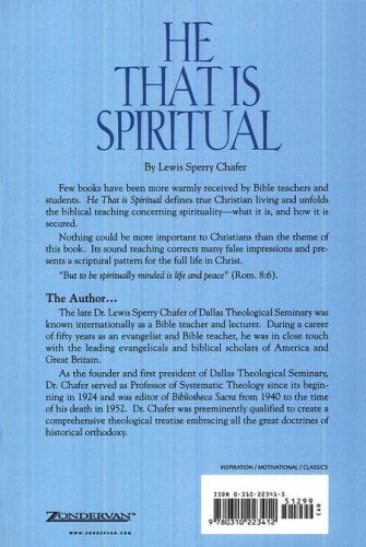 Few books have been more warmly received by Bible teachers and students. He That is Spiritual defines true Christian living and unfolds the biblical teaching concerning spirituality — what it is, and how it is secured. Nothing could be more important to Christians than the theme of this book. Its sound teaching corrects many false impressions and presents a scriptural pattern for the full life in Christ.
