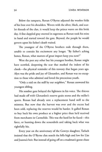 Sixth-century Scotland—in the time of Arthur….  "The Gowrys’ seed shall divide your mighty house and bring a peace beyond the ken of your wicked soul." Her mother’s dying prophecy to the chieftain Tarlach O’Byrne sentenced Brenna of Gowrys to twenty years of hiding. Twenty years of being hunted—by the O’Byrnes, who fear the prophecy, and by her kinsmen, who expect her to lead them against their oppressors. But Brenna is a trained and gifted healer, not a warrior queen. So she lives alone in the wilderness with only her pet wolf for company. When she rescues a man badly wounded from an ambush, she believes he may be the answer to her deep loneliness. Healing him comes as easy as loving him. But can their love overcome years of bitterness and greed…and bring peace and renewed faith to the shattered kingdom?