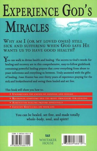 Truly anointed with the gifts of healing, Joan Hunter has over thirty years of experience praying for the sick and brokenhearted and seeing them healed and set free. This book will show you how to:Understand the causes of sickness and diseaseRecognize symptoms and the right procedure for healingAdminister healing prayers effectivelyIdentify God's call on your lifeBy following these step-by-step instructions and claiming God's promises, you can be healed, set free, and made totally whole—body, soul, and spirit!