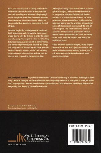 Although Hearing God's Call is about a serious spiritual subject, Johnson never discusses it in a vague or nebulous fashion but always anchors it in instructive particulars. He uses numerous relevant anecdotes to illustrate his principal points, and he provides a thoughtful series of discernment exercises at the end of each chapter. The book concludes with an appendix that examines prominent biblical figures who experienced God's call, including Peter, Paul, John the Baptist, and Mary, the mother of Jesus.
