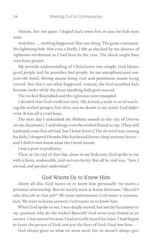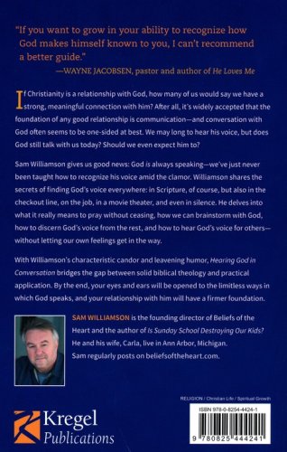 In Hearing God in Conversation, Sam Williamson gives us good news: God is always speaking–we've just never been taught how to recognize his voice amid the clamor. Williamson shares the secrets of finding God's voice everywhere: in Scripture, of course, but also in the checkout line, on the job, in a movie theater, and even in silence. He delves into what it really means to pray without ceasing, how we can brainstorm with God, how to discern God's voice from the rest, and how to hear God's voice for others–without letting our own feelings get in the way.