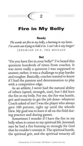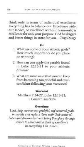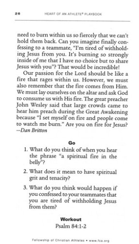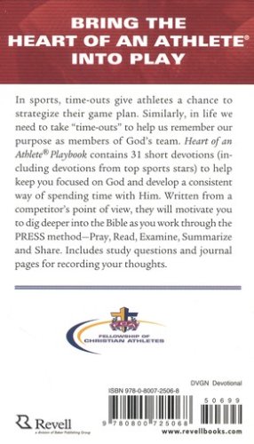 In life, as in sports, a quick time-out to rethink and re-center on the goal is a smart strategy. The Heart of an Athlete Playbook gives readers regular spiritual training for life on and off the field. This collection of 31 devotional readings are a quick start for athletes at any level, offering memorable, biblical insights for handling challenges and playing with God's purposes in mind. Readers will be introduced to the FCA devotional method, "PRESS," designed with athletes in mind: Pray, Read, Examine, Summarize, and Share, and will discover how to use biblical principles to become a dynamic competitor for Christ.