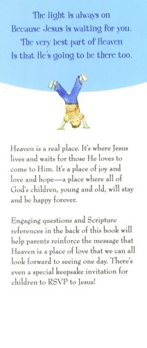 The light is always onBecause Jesus is waiting for you.The very best part of HeavenIs that He’s going to be there too.Heaven is a real place. It’s where Jesus lives and waits for those he loves to come to him. It’s a place of joy and love and hope—a place where all of God’s children, young and old, will stay and be happy forever.Engaging questions and scripture references in the back of this book will help parents reinforce the message that Heaven is a place of love that we can all look forward to seeing one day. There’s even a special keepsake invitation for children to RSVP to Jesus!
