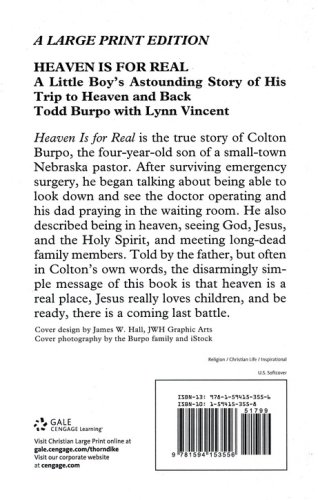 Review Heaven Is for Real: A Little Boy's Astounding Story of His Trip to Heaven and Back, Large-Print Edition.