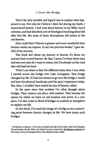 When Piper returned to this life, he had a long road back to health, dealing with painful treatments and physical disabilities-the "new normal," as Piper calls it. Still, he had been transformed spiritually and this allowed him not only to cope with his suffering, but to transcend it. Piper found purpose in his pain, he found the message in the mess, and so can anyone else who embraces God's grace in the here and now-as well as the Hereafter.