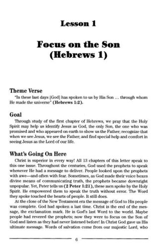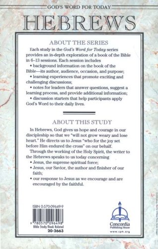 Each study in the God's Word for Today series provides an in-depth exploration of a book of the Bible in 6-13 sessions. Each session includes background information on the book of the Bible–its author, audience, occasion, and purpose; learning experiences that promote exciting and challenging discussions; notes for leaders that answer questions, suggest a learning process, and provide additional information; and discussion starters that help participants apply God's Word to thier daily lives. In Hebrews, God gives us hope and courage in our discipleship so that we "will not grow weary and lose heart." He directs us to Jesus "who for the joy set before Him endured the cross" on our behalf.