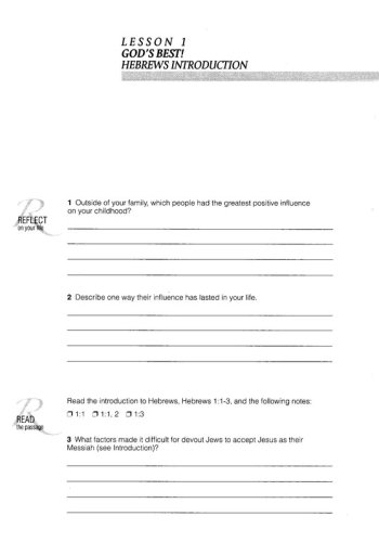 Whether you are teaching a class, leading a small group, or just looking for a challenging personal study, these Life Application Bible Studies are for you. With thought-provoking questions, complete lesson format, the full text of the book of Hebrews, and the most extensive commentary available in a Bible-study booklet, this study guide gives you everything you need for understanding God's Word and applying it to your life.