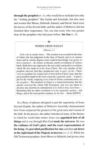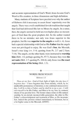 This book in the Wesley Bible Studies series provides a thoughtful and powerful survey of key Scriptures in Hebrews. It combines accessible commentary from contemporary teachers, with relevantly highlighted direct quotes from the complete writings and life experiences of John Wesley, along with the poetry and hymns of his brother Charles. And for each study, creative and engaging questions and activities likewise foster deeper fellowship and growth.