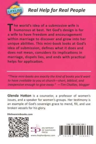 The world's idea of a submissive wife is humorous at best. Yet God's idea is to give her the freedom to be the special person she was created to be. This mini-book looks at God's idea of submission, defines what it does and does not mean, considers its implications in marriage, dispels lies, and ends with practical helps for application.