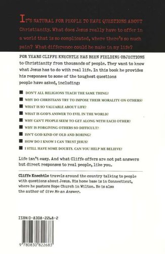 It's natural for people to have questions about Christianity. What does Jesus really have to offer in a world that is so complicated, where there's so much pain? What difference could he make in my life? For years Cliffe Knechtle has been fielding objections to Christianity from thousands of people. They want to know what Jesus has to do with real life. In this book he provides his responses to some of the toughest questions people have asked.