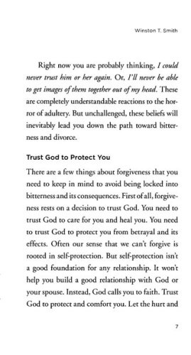 The pain of betrayal is like touching a hot stove. Your instinct is to move away—fast. But marriage and family counselor Winston T. Smith urges you to not make any quick decisions about the future of your marriage, to instead go to God with your hurt and pain. He also offers practical, biblical advice on how to talk with your spouse about the adultery, how to set boundaries, and how to process your emotions in a godly way.