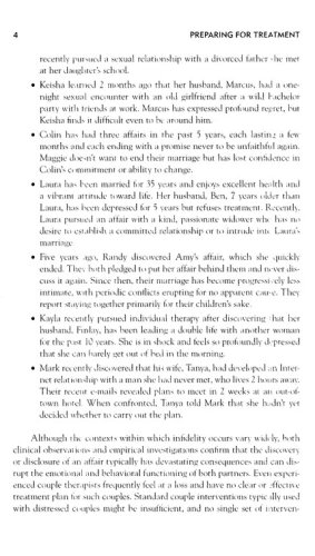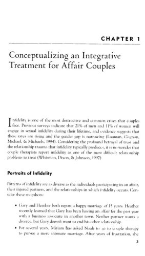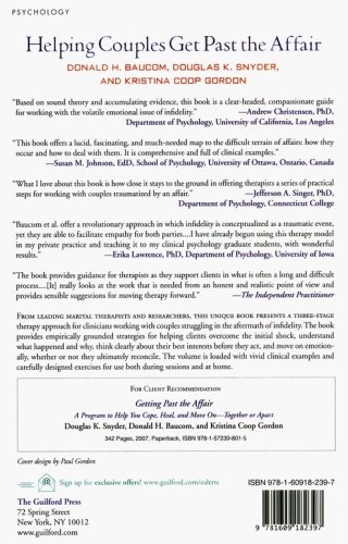 From leading marital therapists and researchers, this unique book presents a three-stage therapy approach for clinicians working with couples struggling in the aftermath of infidelity. The book provides empirically grounded strategies for helping clients overcome the initial shock, understand what happened and why, think clearly about their best interests before they act, and move on emotionally, whether or not they ultimately reconcile. The volume is loaded with vivid clinical examples and carefully designed exercises for use both during sessions and at home.