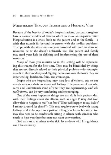 Whether you’re a layperson or a professional counselor, Helping Those Who Hurt will help you care for others encountering life crises such as:Illness, hospitalization, and deathA troubled marriageAddictionSuicide