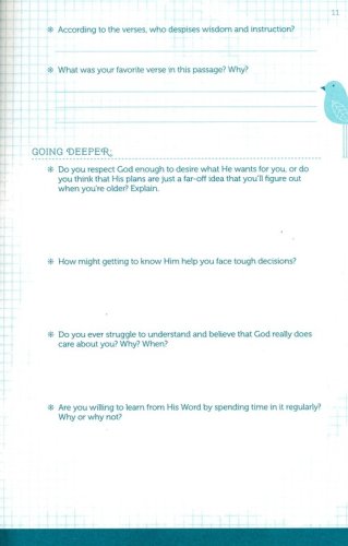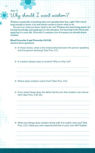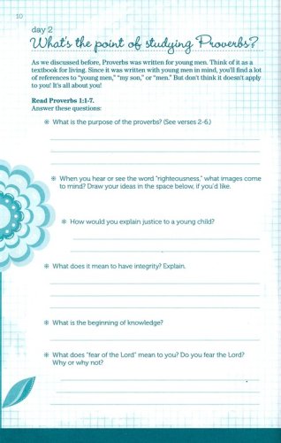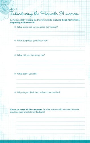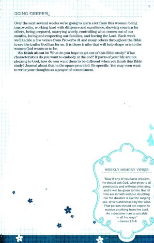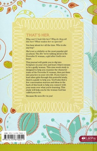 Includes small group options in the back, written for teen girls to lead their own small group study of Proverbs 31.Character traits found in Proverbs 31 and reinforced through other Scriptures are broken up into short, daily readings so that girls can digest truths more easilyOptional activities in the back for moms and daughters to do togetherJournal-style book that appeals to teen girls will allow girls to write and process God’s work in their lives throughout the studyGirls will take ownership as they lead a small group studyGirls will learn the discipline of daily time with GodGirls will pursue a Proverbs 31 lifestyle in their own cultural context