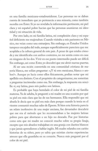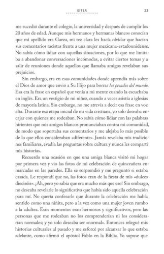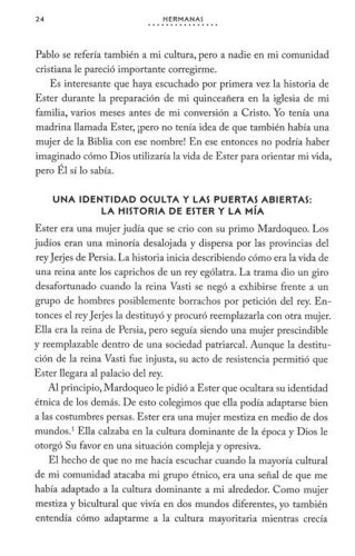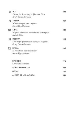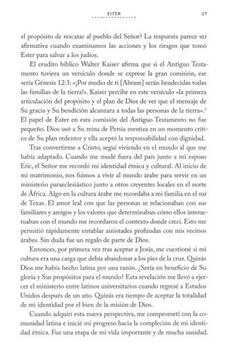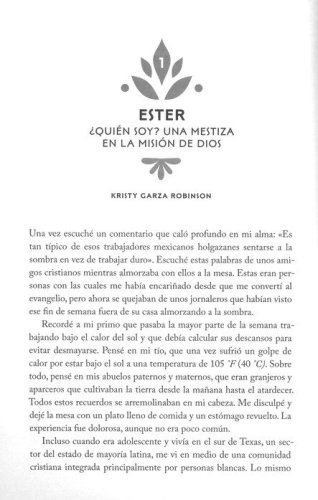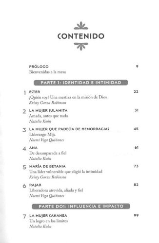 Natalia Kohn, Noemí Vega Quiñones y Kristy Garza Robinson nos refieren sus historias como latinas y líderes. Las autoras adoptan como mentoras a doce mujeres de la Biblia que incluyen a Ester, Rajab, María y Lidia. Estas heroínas bíblicas enfrentaron dificultades y sufrimiento como mujeres biculturales que derribaron fronteras. Cuando desarrollamos nuestra identidad espiritual y étnica, nuestra intimidad con Dios y las demás personas crece. Esto nos permite convertirnos en líderes bien equipados para orientar a las personas hacia Dios.