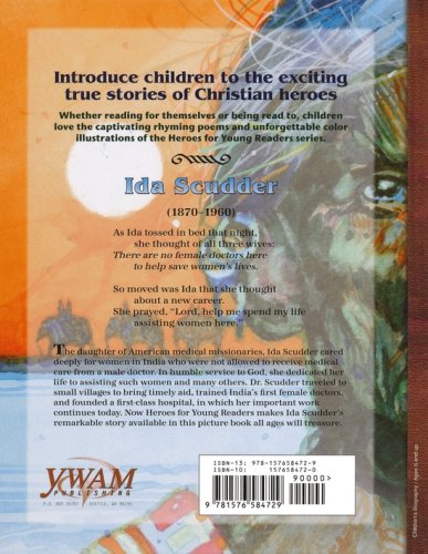 The daughter of American medical missionaries, Ida Scudder (1870-1960) cared deeply for women in India who were not allowed to receive medical care from a male doctor. In humble service to God, she dedicated her life to assisting such women and many others. Dr. Scudder traveled to small villages to bring timely aid, trained India's first female doctors, and founded a first-class hospital, in which her important work continues today. Now Heroes for Young Readers makes Ida Scudder's remarkable story available in this picture book all ages will treasure.