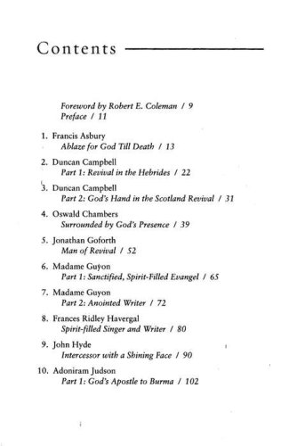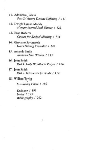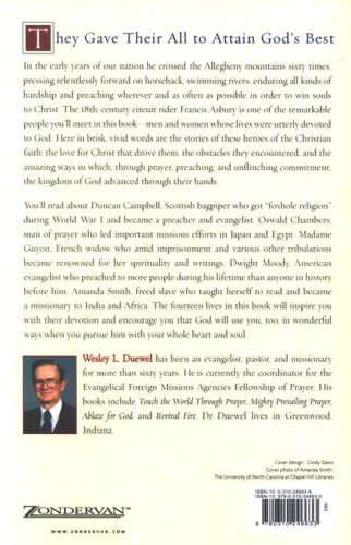 Stories of fourteen outstanding Christians whose words and deeds set an example for believers today.This book recounts the life stories of outstanding Christians who inspire and challenge readers to live more godly lives. These fourteen men and women—some well known and others not—come from many parts of the world and from the 14th to the 20th centuries. These brief biographies highlight the events and special contributions each person has made to the church. Figures presented are Francis Asbury, Duncan Campbell, Oswald Chambers, Jonathan Goforth, Madame Guyon, Frances Ridly Havergal, John Hyde, Adoniram Judson, Dwight L. Moody, Evan Roberts, Girolamo Savonarola, Amanda Smith, John Smith, and Bishop William Taylor.