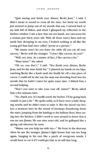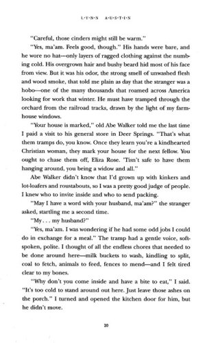 children, she faces mounting debts and the realization it is all up to her. But she has no idea how to run an orchard alone. When a stranger appears at her doorstep, Eliza guesses he is no different than the other out-of-luck characters searching for work during the Depression. But the familiarity with which Gabe tends to the farm raises unanswered questions. With a vulnerable heart, she is unwittingly drawn to his gentle ways. But Eliza also fears that Gabe hides a past and motives that could jeopardize all she has fought to attain for herself and her children….