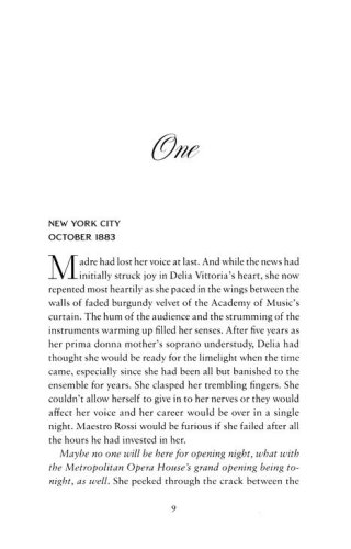 Delia Vittoria's mother has lost her voice at last. After five years of being her diva mother's understudy, it is time for Delia to assume her place as the lead soprano onstage behind the Academy of Music's faded velvet curtain. And she is all that stands between the Academy and its greatest threat–the nouveaux riches' lavish new Metropolitan Opera House.