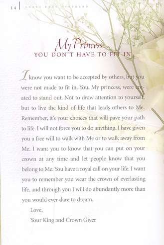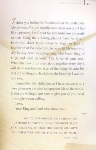 This beautiful four-color book opens the eyes of women to see themselves the way God sees them. Many don't even know that they are daughters of the King – chosen to be His Princess. Somewhere between childhood and adulthood, they trade in their fairy-tale dreams of being cherished for a tarnished identity fashioned by their own insecurities and the mixed-up messages of the media. Now, these tenderly adoring letters written from God's persepective demonstrate that every woman is beautiful just the way she is. Walking in confidence toward her God-given purpose, every woman can bless others – even future generations.