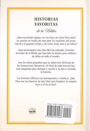 ¡Han escuchado alguna vez sus hijos de cómo Dios abrió un camino en medio del mar para los israelitas, del joven David y el gigante Goliat, y de cómo Jesús ama a los niqos? Aquí presentamos una obra fácil de entender: historias favoritas de la Biblia que han sido de deleite para millones de niños en todo el mundo. Aun los niños más pequeños que no saben leer disfrutan de las ilustraciones llamativas. Al final de cada historia hay unas preguntas para dialogar y ayudar a su hijo a recordar la historia.