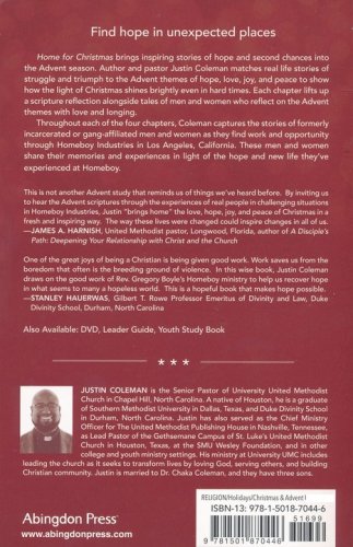 Home for Christmas brings inspiring stories of hope and second chances into the Advent season. Author and pastor Justin Coleman matches real life stories of struggle and triumph to the Advent themes of hope, love, joy, and peace to show how the light of Christmas shines brightly even in hard times. Each chapter lifts up a scripture reflection alongside tales of men and women who reflect on the Advent themes with love and longing. Throughout each of the four chapters and the accompanying DVD for a small-group experience, Coleman captures the stories of formerly incarcerated men and women as they find work and opportunity through Homeboy Industries in Los Angeles, California. These men and women share their memories and experiences in light of the hope and new life they’ve experienced at Homeboy. Forward by Father Gregory Boyle. Additional components for this four-week study include a comprehensive Leader Guide and a DVD featuring author and pastor Justin Coleman.
